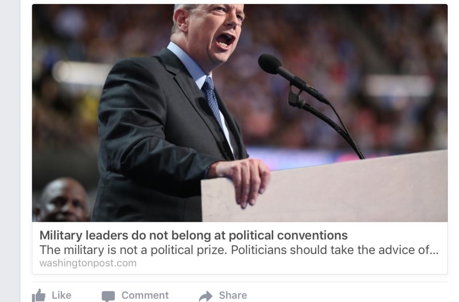 My short response to the recent OpEd by a retired CJCS who doesn’t like to see retired officers involved in domestic politics.