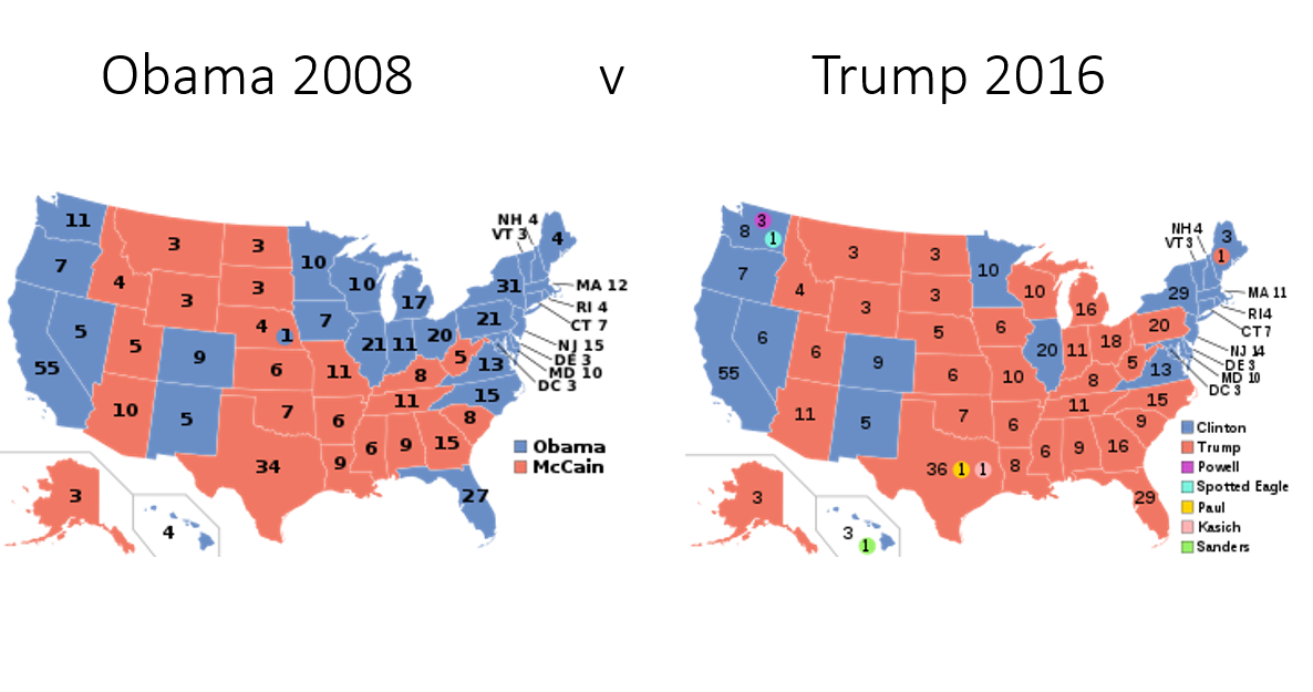 When you glance at these two maps it is hard to see who should lead the nation with such a split of opinion. The electoral college helps ensure the mandate to rule is not weak and that every state is important to the presidential candidates.