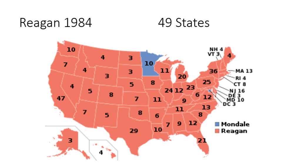 Very seldom will you see an election winning map like this that makes the mandate of a President crystal clear…and Reagan only held 59% of the vote to win that many states, our population is much more evenly spilt today.